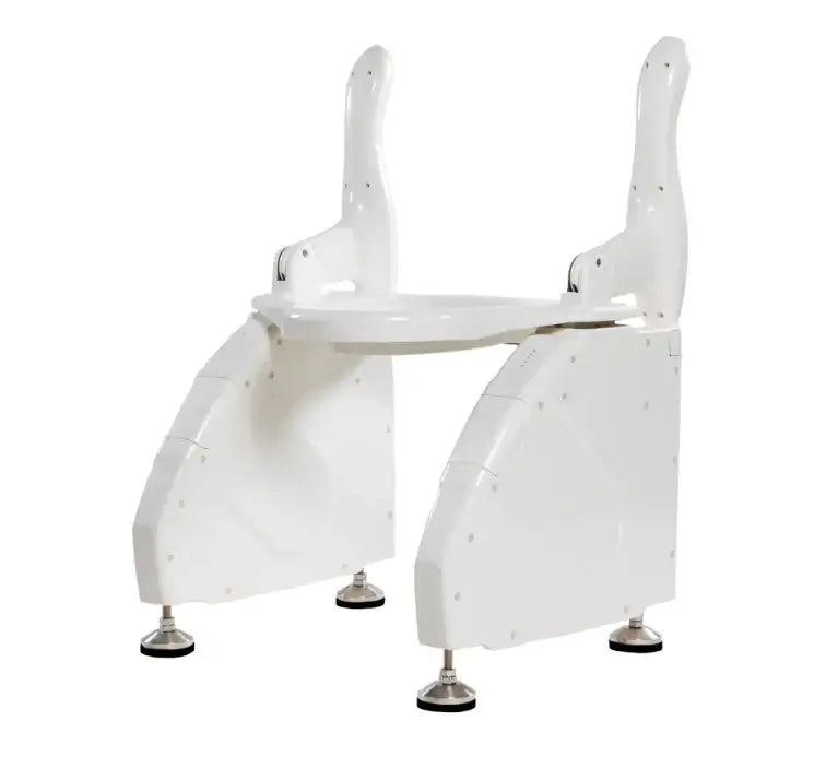 With the press of a button, the lift gently raises or lowers you. Dual hand controls on the armrests and a wireless remote allow simple operation with either hand or by a caregiver. Its sleek, compact design fits easily into most bathro