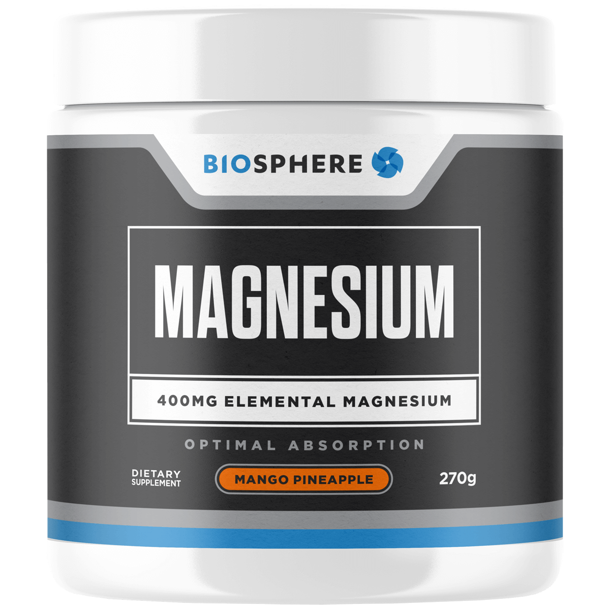 Biosphere Magnesium combines three types of magnesium to create the ideal dose with optimal absorption. The most bioavailable type of magnesium supplements are those that dissolve well into liquid, allowing the magnesium to be completely absorbed into the gut. Each serving contains 400mg of elemental magnesium, a therapeutic dose to help push people into optimal levels of magnesium.