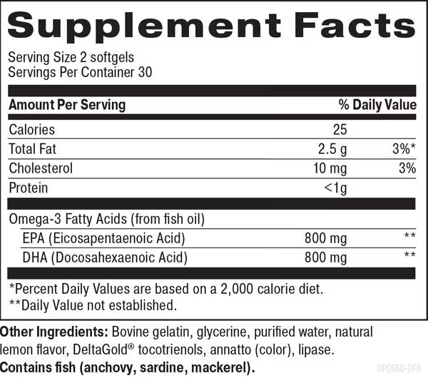 Recommended Use: Take 2 softgels per day with a meal or as directed by your health-care practitioner.
