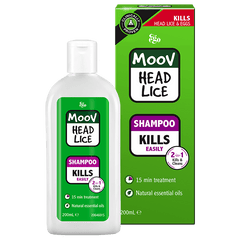 Product Information An easy to use, effective head lice treatment, Moov Head Lice Shampoo is clinically proven to kill head lice. Unlike our other head lice treatment products there’s no need to shampoo hair after treatment. Simply apply to dry hair, cover with reusable shower cap, leave for 15 minutes and then rinse out like a normal shampoo. It has a gentle foaming action like an everyday shampoo and leaves the hair feeling soft and smooth.Ensure you follow instructions carefully to effectively kill head lice and eggs. Recommended for use on normal scalps. Ingredients Aqua (Water), Sodium Lauroyl Sarcosinate, Eucalyptus Globulus Leaf Oil, Cocamidopropyl Betaine, Cocamide DEA, PEG-120 Methyl Glucose, glycerin, Illicium Verum (Anise) Fruit/Seed Oil, Benzyl Alcohol, Citric Acid, Polyquaternium-44. Use on dry hair. Be sure to cover eyes. Divide hair into segments. Apply product behind the ears and to the nape of the neck first. Then apply to remaining hair and scalp. Apply sufficient product to ensure hair and scalp are thoroughly wet. Place shower cap on the head, ensuring all hair including the ears and the nape of the neck are covered by the cap. Leave on hair for 15 minutes. Remove cap, rinse hair and condition as normal. Rinse shower cap for reuse. These steps need to be repeated 7 and 14 days after initial treatment. This is important to effectively break the head lice life cycle.