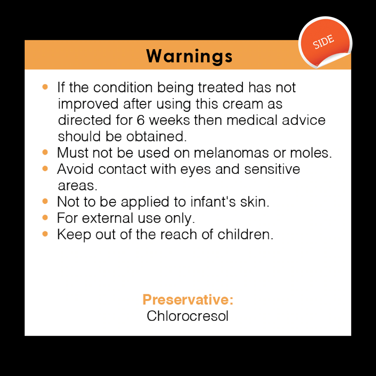 DIRECTIONS: Rub a small amount of the cream into affected areas three times per day; morning, evening and before bed. Allow at least an hour before washing or wetting treated areas. The cream acts gradually and results should begin to appear after 4 weeks Continue treatment until the condition has cleared. Thereafter continue to use as necessary to maintain results.