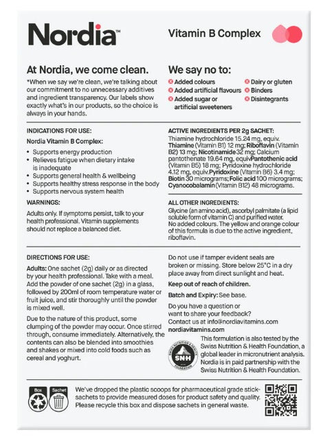 Nordia Vitamin B Complex is vegan friendly and does not contain any dairy, soy or gluten.