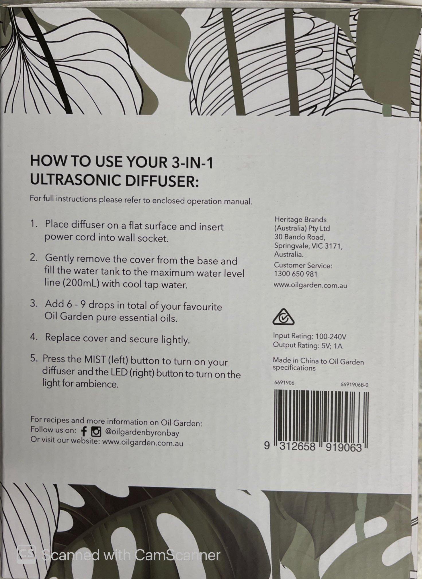 Oil Garden 3 in 1 Ultrasonic Diffuser Humidifier Air Purifier
