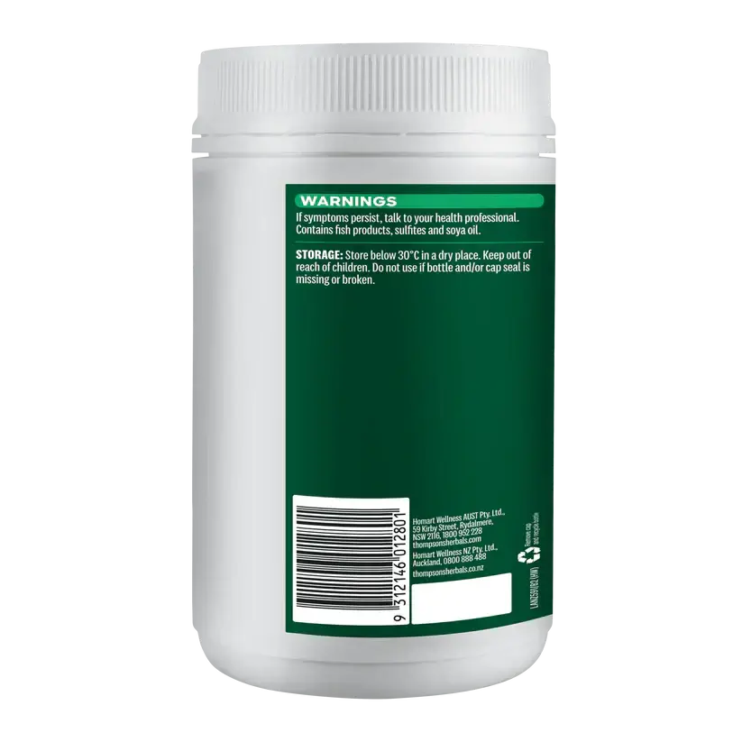 Thompson's Omega-3 Odourless Fish Oil contains sustainably sourced wild fish and is regularly tested for heavy metals.