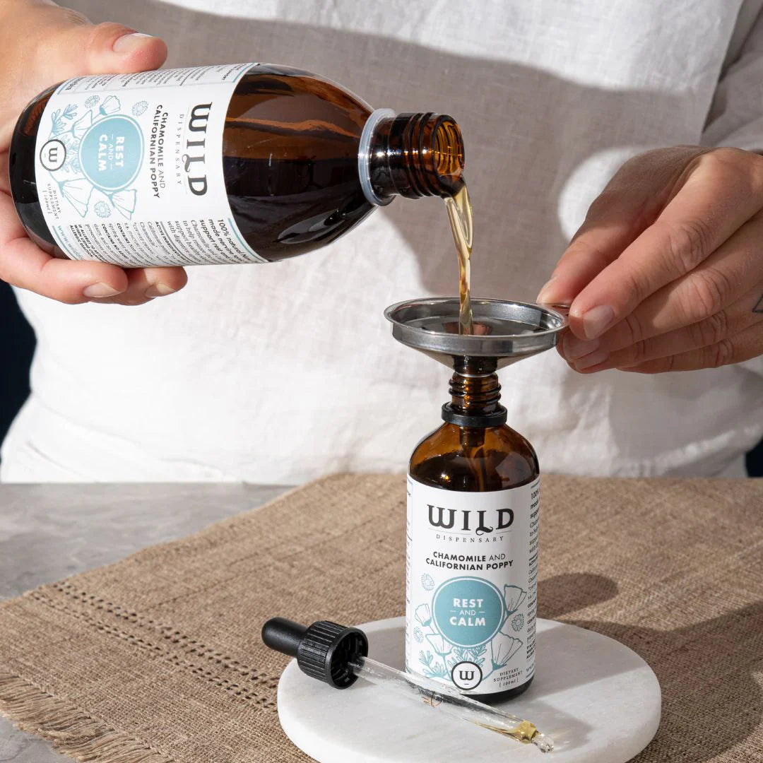 Don't let stress and sleepless nights affect your well-being. Our award-winning Rest and Calm combines two powerful herbs known for their calming and sleep-supporting effects: organic chamomile and wild-harvested Californian poppy. Whether you struggle with stress, anxious feelings or have trouble falling and staying asleep, Rest and Calm is the natural solution you've been looking for - without any unwanted side effects like drowsiness. Our compact dropper makes it easy to take with you on the go, ensuring you feel supported no matter where you are. And flexible dosing allows you to use it both day and night. Don't wait to experience the difference a ritual like Rest and Calm can make in your life.