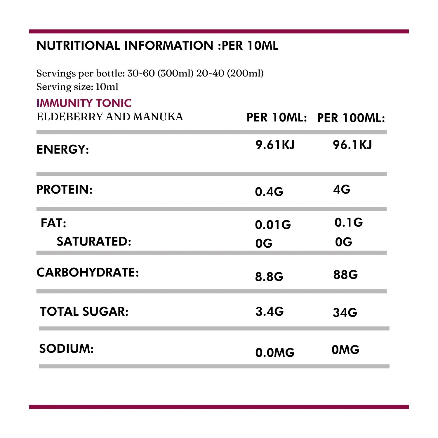 Your go-to solution for supporting a healthy and robust immune system. Our Immunity Tonic is carefully crafted using elderberry and native mānuka. Elderberry has been studied extensively for its ability to support immunity, symptoms of the ills and chills and help with recovery, while mānuka is known for its anti-bacterial properties.