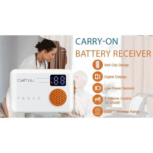 Compact and Portable: This compact pager is designed to be carried by the elderly, providing a convenient and discreet way to receive notifications and alerts, and is ideal for use in a variety of settings, including at home and in care facilities.